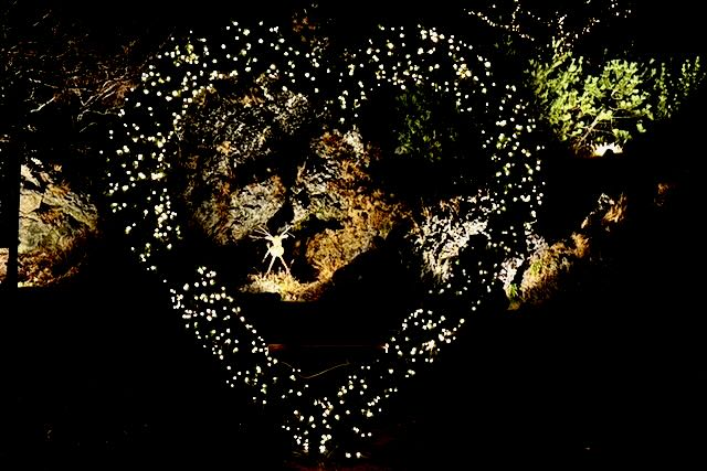 Weihnachtsbeleuchtung mit Herz im Park Hellisgerdi. Hafnarfjördur, 29.11.2024