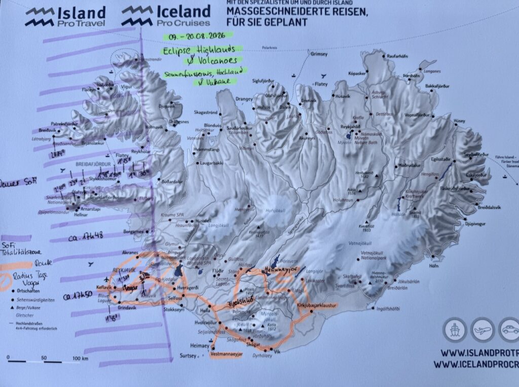 Die Sonnenfinsternis vom 12. August 2026 mit Totalitätszone in Westisland hat längst eine unglaubliche Euphorie in Island ausgelöst. Zum Glück haben wir frühzeitig im Südwesten Hotelzimmer reserviert, die restliche Route wurde später geboren und dank gutem Kontakt haben wir auch ein Flugkontingent erhalten! Die ersten vier Tage gestalten wir flexibel, je nach Wetter, im Umkreis der Halbinsel Reykjanes und über Reykjavik hinaus, möglichst etwas abseits der Touristenströme. Für die Sonnenfinsternis hoffen wir im Bereich der Totalität wolkenfreien Himmel zu finden. Mit etwas Glück dürfen wir dem Himmel während der Reise noch mehr abgewinnen und erste Nordlichter und Leuchtenden Nachtwolken beobachten. Am 13. August verlassen wir unser Basislager in Vogar, besuchen die Westmännerinseln, bevor wir das südliche Hochland inklusive Lakispalte erkunden. Vulkane begleiten uns tagtäglich, ob aktiv oder gerade pausierend. Ein Reise, wie es sie noch nie gab und auch nicht mehr geben wird, himmlisch und abenteuerlich zugleich und mit Flexibilität, dank teilweise etwas offenem Programm!