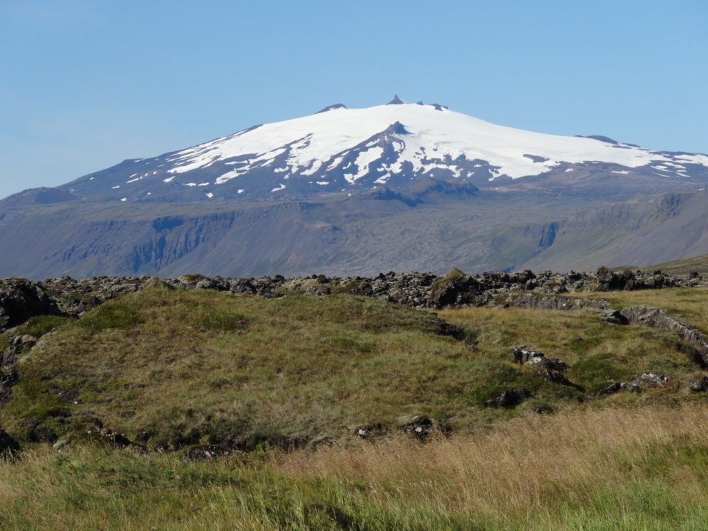 Die Reise zum Erdmittelpunkt gibt es bei keinem Reiseanbieter zu buchen, aber die vielfältige Halbinsel Snaefellsnes ist sehr beliebt. Helle und dunkle Strände, fantastische Klippen und Felsformationen, Lavafelder voller Trolle, Krater und Berge lassen sich hier entdecken und man spricht bei der Halbinsel auch von „Island en miniature“. Ganz im Westen thront majestätisch der 1446 Meter hohe Vulkan Snaefellsjökull. Dieser ist seit der letzten Eiszeit vor 10’000 Jahren dreissig bis vierzig Mal ausgebrochen, die letzte Eruption liegt ungefähr 1800 Jahre zurück. Je nach Wetter und Licht kann man den Gipfelkrater und die vielen erkalteten Lavaströme bestens erkennen. Mit Glück sieht man den Berg über weite Distanzen von Reykjavik oder Keflavik. Das Gebiet rund um den  Snaefellsjökull ist heute ein Nationalpark. Der Schneeberggletscher, wie der Vulkan übersetzt heisst, trägt eine Gletscherkappe, aber diese schwindet. 2012 war ein Teil am Gipfelkrater erstmals eisfrei, in den letzten Sommern blieb der Berg zuoberst wiederum weiss. Für viele Esoteriker ist dieser Berg ein bedeutendes Energiezentrum und es gibt auch andere Schriftsteller, welche den Gletscher zum Motiv wählten, wie zum Beispiel Halldor Laxness in seinem Buch „Am Gletscher“.