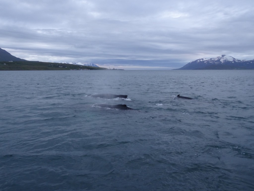 - Gleich drei Buckelwale vor dem Boot im Eyjafjördur. 07.08.2015