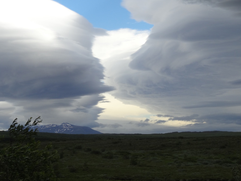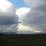 - Gewaltige Wolkenfronten weisen bei Geysir auf einen Sturm hin. 05.07. 2014