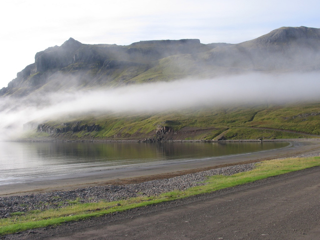 - Ein Nebelstreifen ziert den Fjord. 04.07.2013