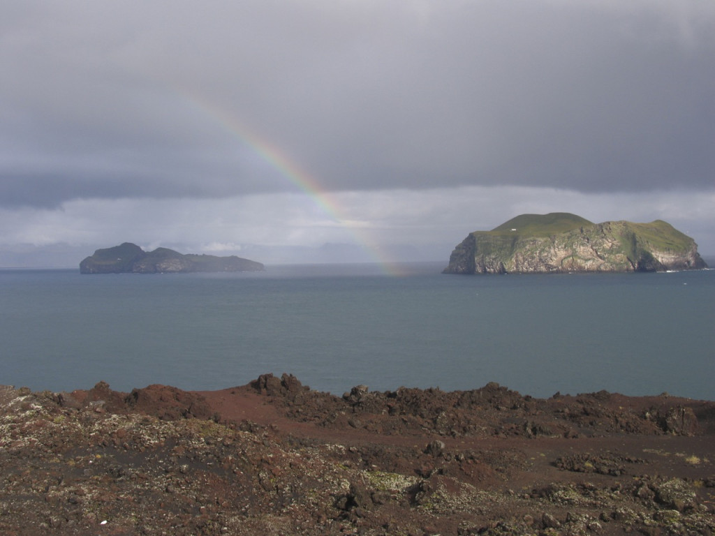 - Bedrohliches Wetter mit typischem Regenbogen bei den Westmännerinseln. 20.09.20122