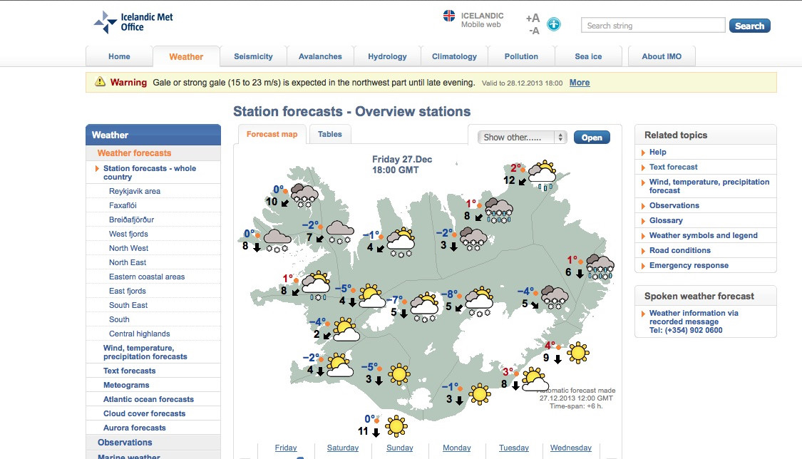 Wer in Island reist, ist gut beraten den Wetterbericht zu konsultieren und Wetterwarnungen nicht „in den Wind“ zu schlagen. Windböen können Fahrzeuge von der Strasse fegen, wer sich nicht gut auskennt, frage die lokalen Bewohner. Im Notfall bleibt man länger als geplant, wo man ist und wartet bis sich ein Sturm gelegt hat.