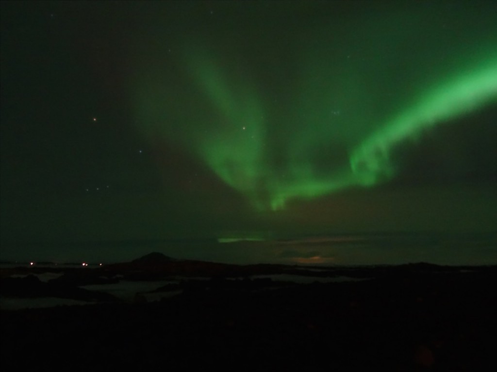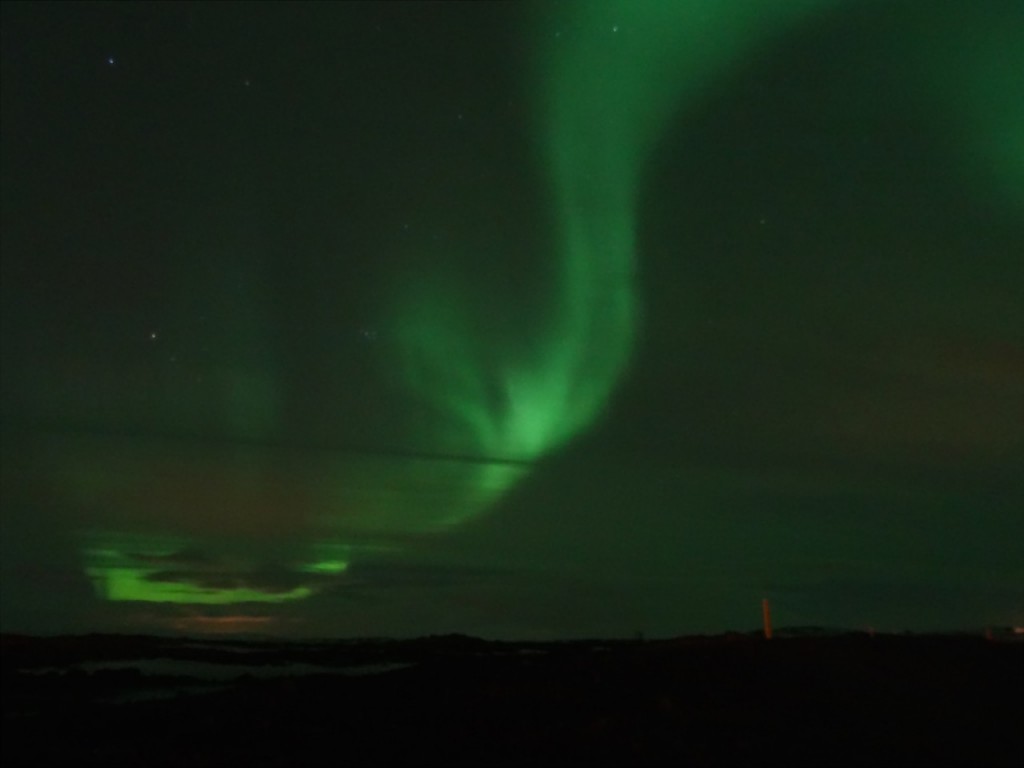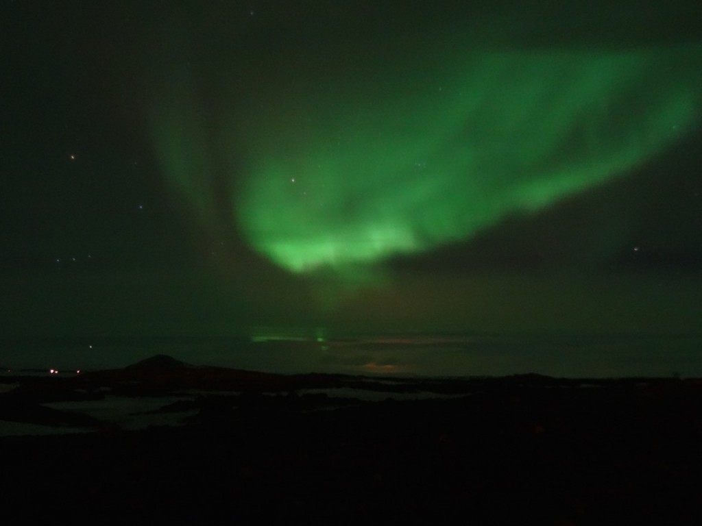 Das Team Best of Iceland ist im Moment mit einer Gruppe unterwegs auf der Rundreise Nordlichter und heisse Quellen (Daten für Herbst, Winter 2015/16 sind bekannt). Nach einem stürmischen Tag erreichten wir Myvatn. Sämtliche Nordlichtvorhersagen und -Apps versprachen am 14. März wenig Hoffnung auf einen leuchtenden Himmel. Wieder einmal zeigte sich, dass es sich dennoch lohnt direkt draussen zu schauen, ob der Himmel klar ist und vielleicht doch schon ein schwaches Polarlicht zu sehen ist. Der Teilnehmer Jens meldete, er sei nicht ganz sicher, aber vielleicht sei doch etwas am Himmel… Warm anziehen und weg aus den Lichtern in die Dunkelheit lautete die Devise und die Geduld und Ausdauer wurde tatsächlich belohnt.