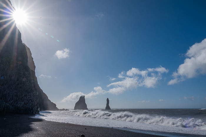 Einzigartig, wunderschön und gefährlich liesse sich Reynisfjara kurz zusammengefasst beschreiben. Unzählige Male stand ich an diesem Strand und konnte mich an der Weite bis hinüber zu Dyrholaey nicht sattsehen. Am meisten genoss ich es, wenn der Parkplatz nicht voll war und der Strand eine gewisse Ruhe bot. Wie gerne schaute ich den Wellen zu, wie sie sich über den schwarzen Strand ausbreiteten und unter Bildung fantastischen Strukturen wieder zurückzogen. Ende Juli, anfangs August waren es dann die Papageitaucher, welche die Aufmerksamkeit auch auf sich zogen. Etwas wehmütig scrollte ich nun in alten Bildern.
