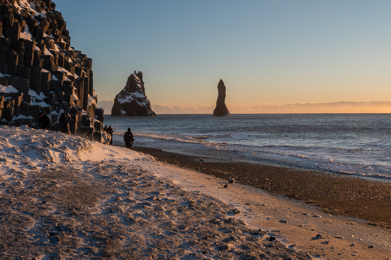Während Wochen herrschte eine eher untypischen Wetterlage mit andauernden, starken Ostwinden, welche in Kombination mit hohen Gezeiten extrem viel Sand von Reynisfjara Richtung Arnardrangur und Dyrholaey verfrachteten. Der Strand war immer Winden und Strömungen ausgesetzt, Sand wurde je nach Situation weggetragen oder angelagert. Nun aber wurde innert kurzer Zeit so viel wegerodiert, dass sich auch Steine und Felsblöcke von den Hängen lösten und Erdrutsche verursachten, Reynisfjara wurde innert kürzester Zeit völlig umgestaltet. Der grösste Teil des Sandes auf der östlichen Seite ist weg, der verbliebene Sand ist von Unmengen an Steinen überdeckt und die wunderschönen Basaltsäulen stehen nun im Meer. Reynisfjara wurde im Laufe der Jahre mehrmals von Reisemagazinen zu einem der zehn schönsten Strände der Welt auserkoren und erlangte so Berühmtheit. Kein Wunder wurde dieser Ort von sehr vielen (manchmal für meinen Geschmack zu vielen) Touristen besucht.