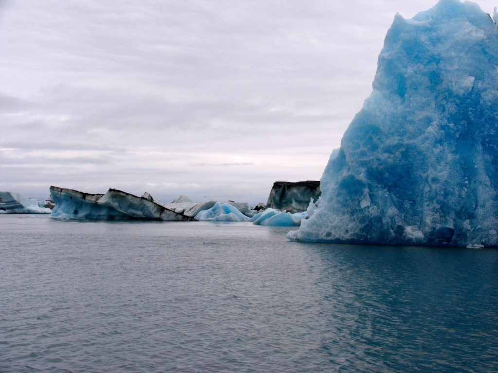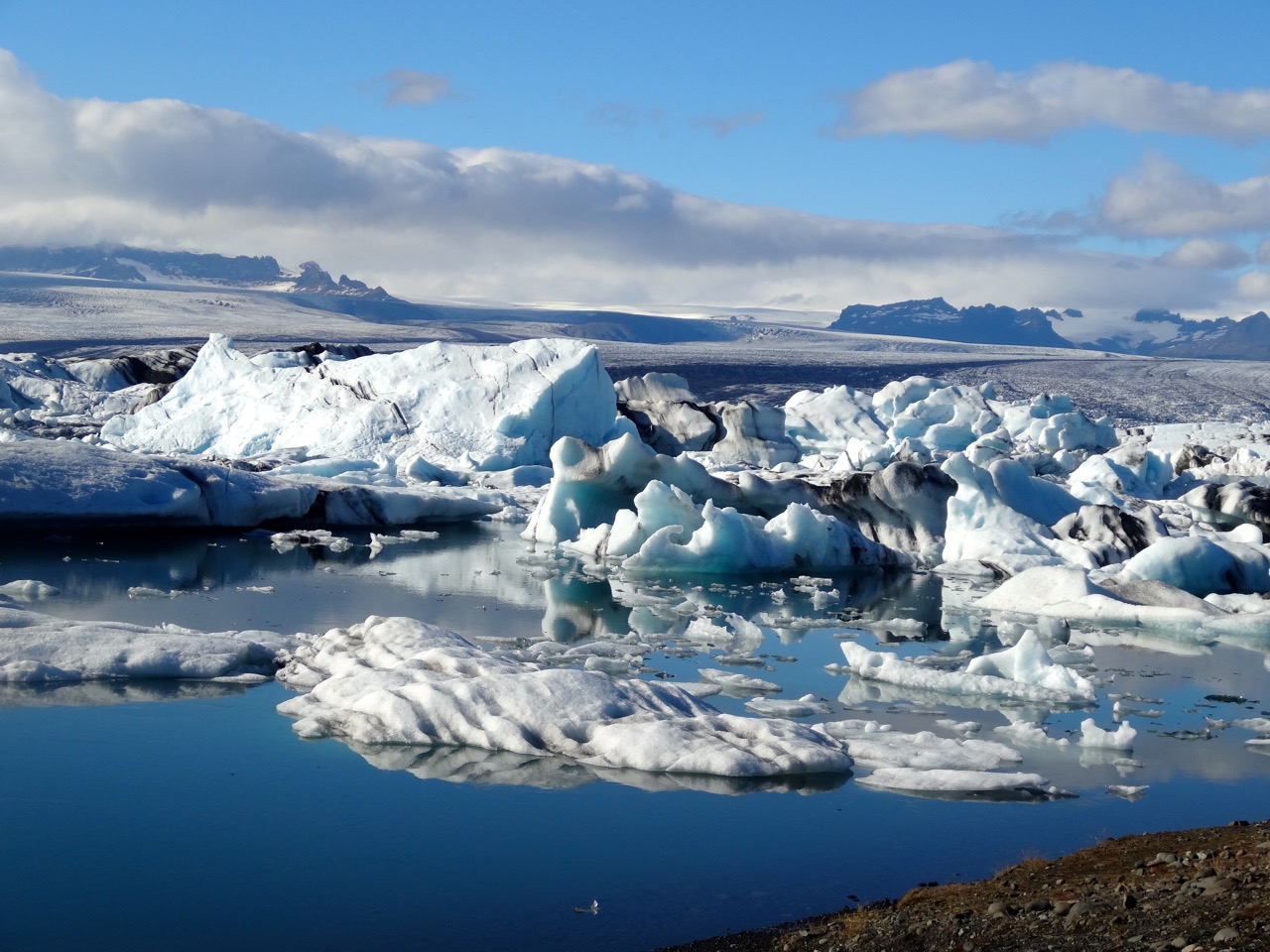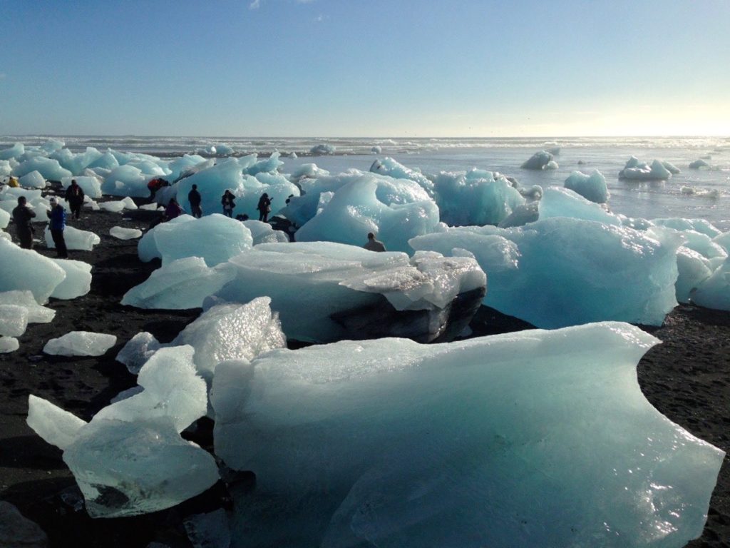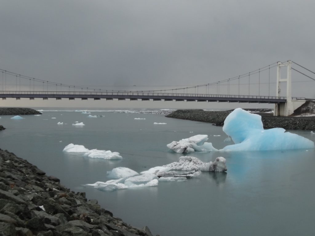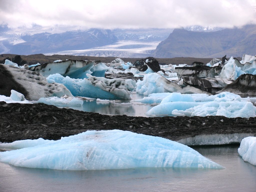 Wer die Gletscherlagune mehrmals besucht, wird diese nie gleich vorfinden. Einmal hat es unendlich viel Eis, ein anderes Mal findet man nur wenige Eisberge, teilweise stauen sich diese beim Ausfluss, dann wieder sind sie ganz weit hinten zu sehen. Das Spiel von Ebbe und Flut ist attraktiv und die Eisstücke können mit recht hohem Tempo Richtung Meer oder aber zurück in die Lagune getrieben werden. Dreht sich ein Eisberg, erscheint er in klarem blau, je länger das Eis iam Sonnenlicht ist,  umso mehr weisser wird es. Kleine Stücke sind ganz klar, vielleicht befindet sich darin sogar eingelagerter schwarzer Sand. Es lohnt sich das klare Eis zu kosten, zum Beispiel in einem Whisky, denn wo sonst gibt es tausendjähriges Eis? Erstaunlich wie langsam dieses sehr kompakte Eis schmilzt. Mal herrscht bei der Gletscherlagune perfekter Sonnenschein, aber auch mystische Nebel können toll wirken. Blaues Eis erscheint blauer bei bewölktem Himmel. Sehr attraktiv kann der schwarze Strand an der Küste auf der anderen Strassenseite sein. Je nach Wind und Strömung werden dort grosse und kleine Eisbrocken abgelagert, bevor sie im Atlantik für immer schmelzen werden. Ein wahrer Naturspielplatz.