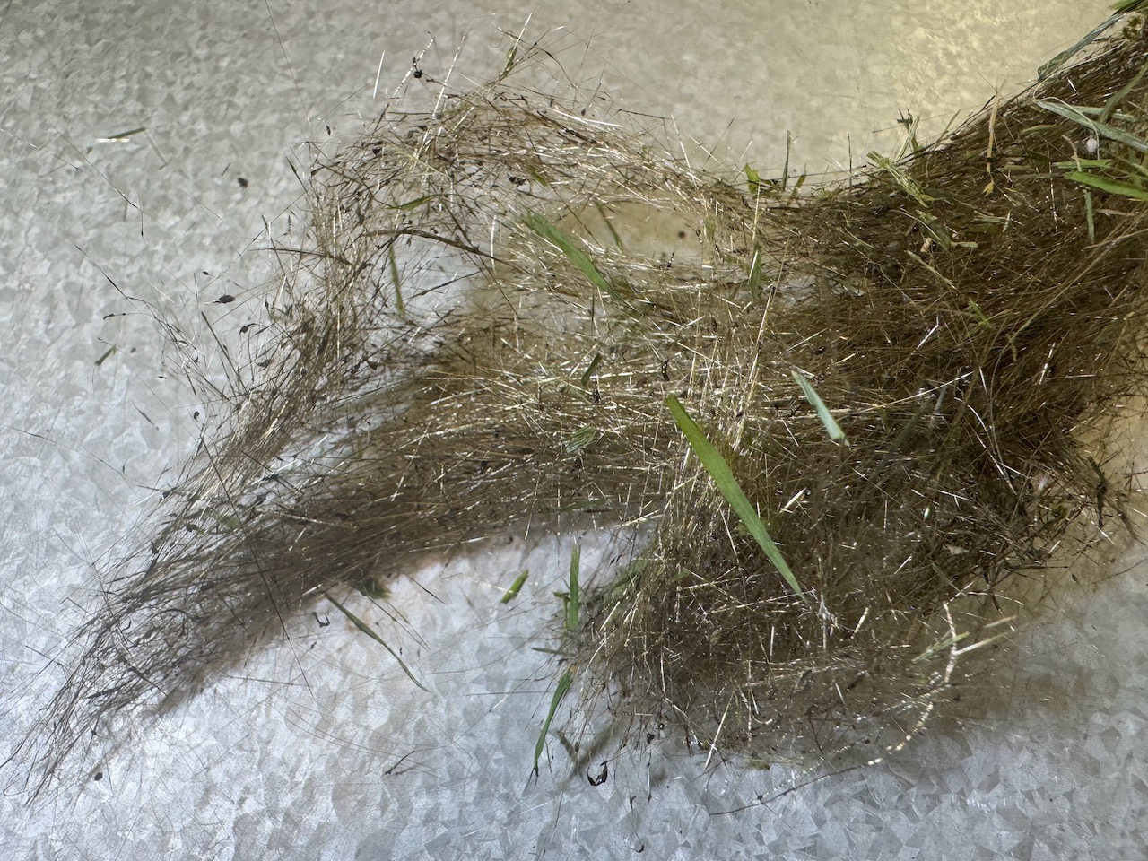 Wie schon beim sechsten Ausbruch vom 22. August 2024 kam es wegen des Zusammenwirkens von basaltische Lavafontänen und Wind zur Bildung von glasartigen Pele-Haaren, die wie im früheren Blogbeitrag beschrieben mit Vorsicht zu behandeln sind. In Island werden die feinen Fäden aus vulkanischem Glas als „Nornahar“ (übersetzt Hexenhaar) bezeichnet. Ganze Büschel davon waren bei der Garage von Best Travel in Njardvik gefunden.