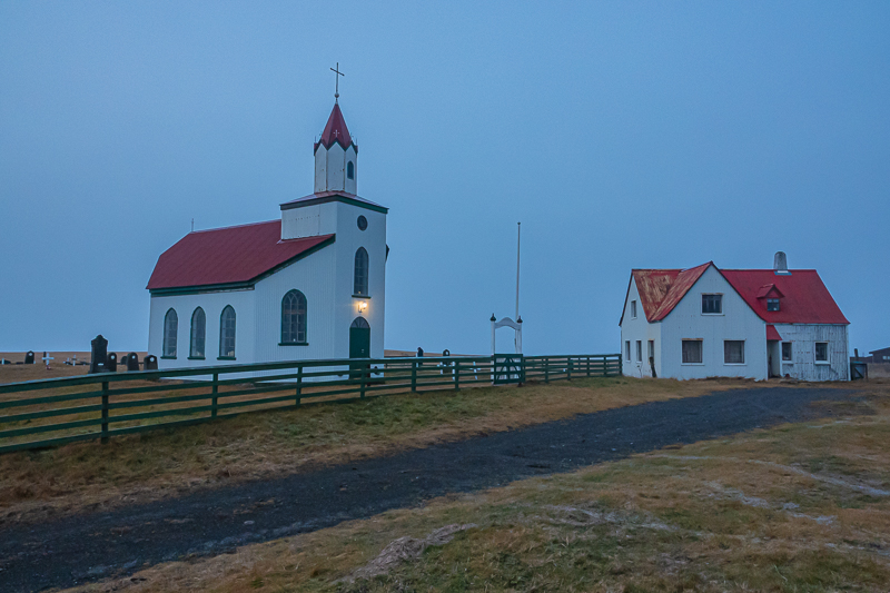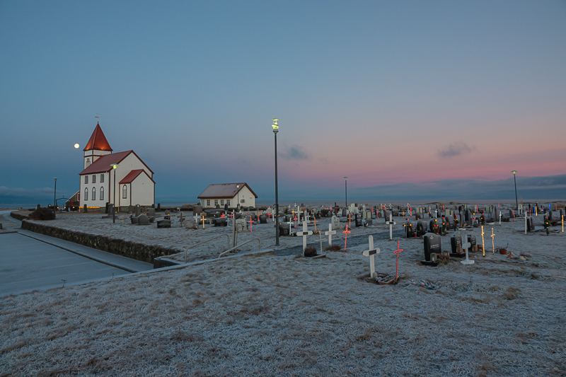 - Hvalsneskirkja mit Friedhof kurz vor Sonnenaufgang. 02.01.2026
