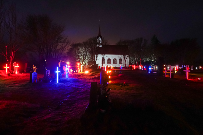 - Leuchtender Friedhof und Kotstrandarkirkja bei Hveragerdi. 30.12.2025