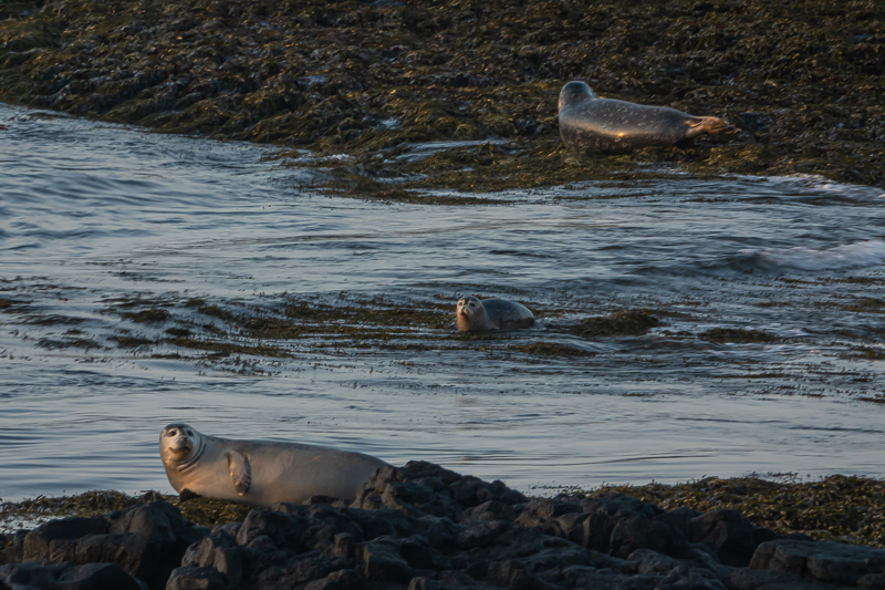 Neu für uns alle war die Fahrt einer Schlaufe im Myrargebiet nordwestlich von Borgarnes. Selbst an diesem nebligen Tag bewunderten wir Natur und Farmen so nah am Meer und stiessen auf die schöne Akrarkirkja. Die Idee in Ytri Tunga nach Robben Ausschau zu halten, fiel diesem tollen Abstecher zum Opfer, aber das machte uns nichts aus. Nicht neu für mich war die Strandarkirkja auf der Fahrt von Selfoss nach Reykjanes, aber dass wir dort zahlreiche Seehunde finden würden, haben wir nicht erwartet. Eine isländische Familie in Stiefeln und mit Feldstechern strebte vom Parkplatz zielstrebig zur Küste. Es lohnte sich ihnen zu folgen, um zu herauszufinden, wonach sie suchten.