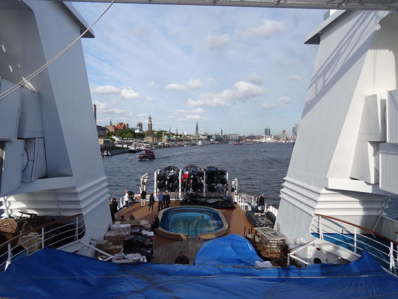 Am 13. Mai hatte die Öffentlichkeit in Hamburg die Chance das Schiff zu besichtigen, geladene Gäste, wie auch die Blogverfasserin durften sich am Abend umsehen, für eine Nacht die Kabinen testen und am Abend ein feines Dinner zur Feier dieser Schiffsübernahme geniessen.
