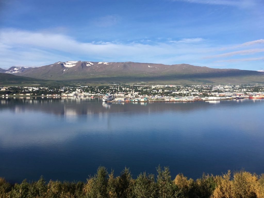 - Aussicht nahe der Tunnelbaustelle auf Akureyri im Sommer. 19.08.2016