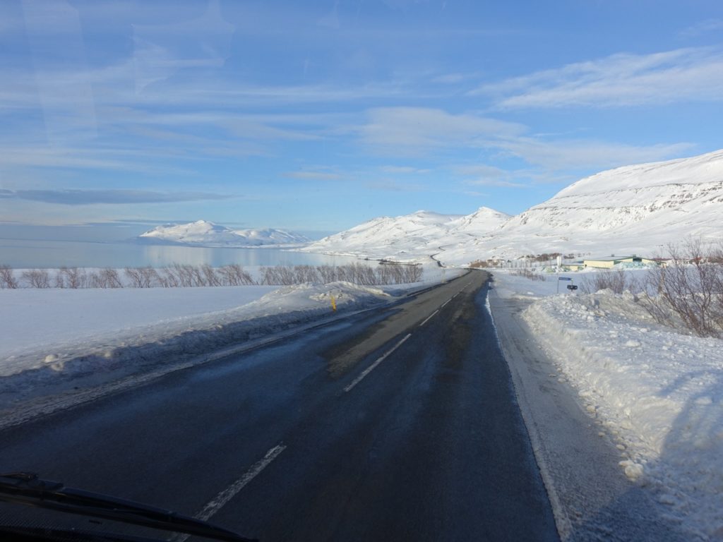 Beteiligt am Bau ist wie beim Konzerthaus Harpa in Reykjavik die Schweizer Baugruppe Marti. Es ist geplant, den Tunnel Vadlaheidagöng im August 2018 für den Verkehr eröffnen zu können. Der Tunnel misst 7,2 Kilometer und verkürzt die Strecke zwischen Husavik und Akureyri um 16 Kilometer, um die gleiche Distanz wird auch die isländische Ringstrasse reduziert. Seit jeher müssen Einheimische und Touristen bei jedem Wetter und durch das ganze Jahr den 325 m hohen Pass Vikurskard überqueren, um von Myvatn oder Husavik nach Akureyri oder umgekehrt zu gelangen. Im Winter ist dies bei heftigem Schneefall oder Sturm oft gar nicht möglich, die Verkehrsverbindung kann tagelang unterbrochen sein. Reisende mussten ihre Reiseroute oft ändern oder warten bis der Pass wieder offen ist. Einheimische aus dem Nordosten konnten dann nicht einkaufen gehen oder im Notfall weder den Arzt noch das Spital in Akureyri erreichen. Dieser Tunnel ist in Nordisland ein langersehntes Bauwerk, auf welches die lokale Bevölkerung lange warten musste. Zum einen waren und sind da natürlich die enormen Kosten von 14,5 Milliarden Isländischen Kronen (umgerechnet ca. 12,6 Mio. Euro) ein nachteiliger Punkt. Dies sind auch 4,5 Milliarden (3,9 Mio. Euro) mehr als ursprünglich veranschlagt wurden. Andere Regionen fühlen sich übergangen und stufen ihre Verkehrsprojekte als dringlicher ein. Die Bauarbeiten starteten schlussendlich 2013 und viele Reisende dürften über den wachsenden Berg an Tunnelmaterial auf der Vorbeifahrt gestaunt haben. Fast wie beim Bau der Alpentunnel kam es auch hier zu unerwarteten Zwischenfällen. So wurde 2014 eine Heisswasserquelle angebohrt und es war während einiger Zeit nicht mehr möglich bei den heissen Temperaturen im angefangenen Tunnelstück auf der Eyjafjörddurseite zu arbeiten. Seither strömen pro Sekunde 350 Liter heisses Wasser aus dem Tunnel und fallen als dampfender Wasserfall in den Fjord. Dies lässt sich besonders gut auf einer Walbeobachtungsfahrt im Eyjafjördur beobachten. Seit März 2017 werden Ideen gesucht, wie man dieses geothermische Wasser sinnvoll nutzen könnte. Später wurde bei einer Sprengung eine Kaltwasserader erwischt, welche den Gang unter Wasser setzte. Man musste Boote benutzen um in den Tunnel zu gelangen. Aber nun ist wohl der geologisch schwierigste Teil geschafft und man hofft, dass die nächsten 15 Monate bis zu Eröffnung des Vadlaheidargöng einfacher sein werden. Bis dahin reist man weiterhin über den Vikurskard und auch später ist diese Strecke bei guten Wetterbedingungen unbedingt zu empfehlen, da sie landschaftlich sehr schön ist, sei es auf der Fahrt nach nach Osten oder Westen, bei letzterer hat man das Gefühl hat, direkt in den Fjord hinunter zu fahren.