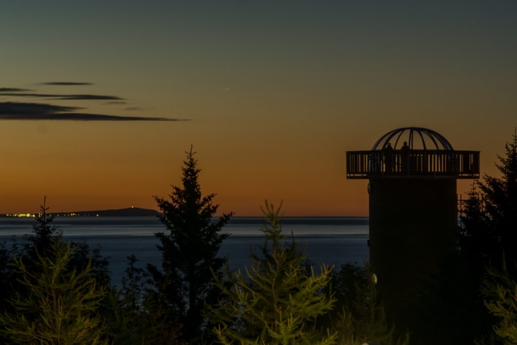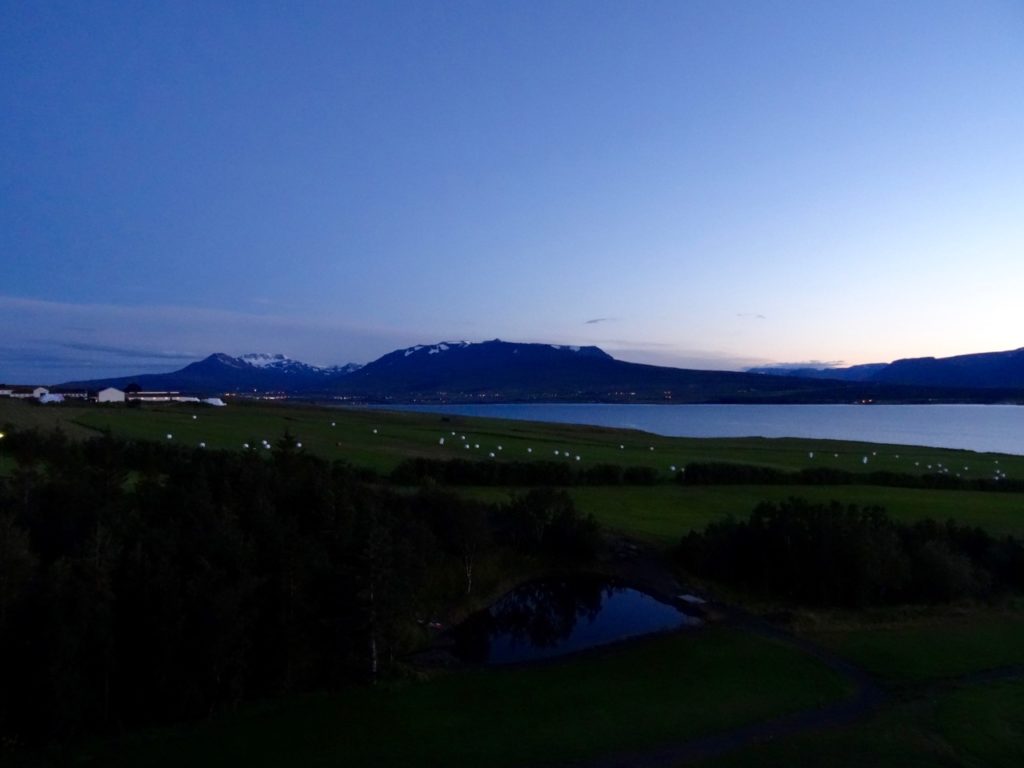 - Beobachter geniessen die wunderbare Abendstimmung über dem Eyjafjord vom Siloturm von Hotel Natur. Bild Stefan, 21.09.2015